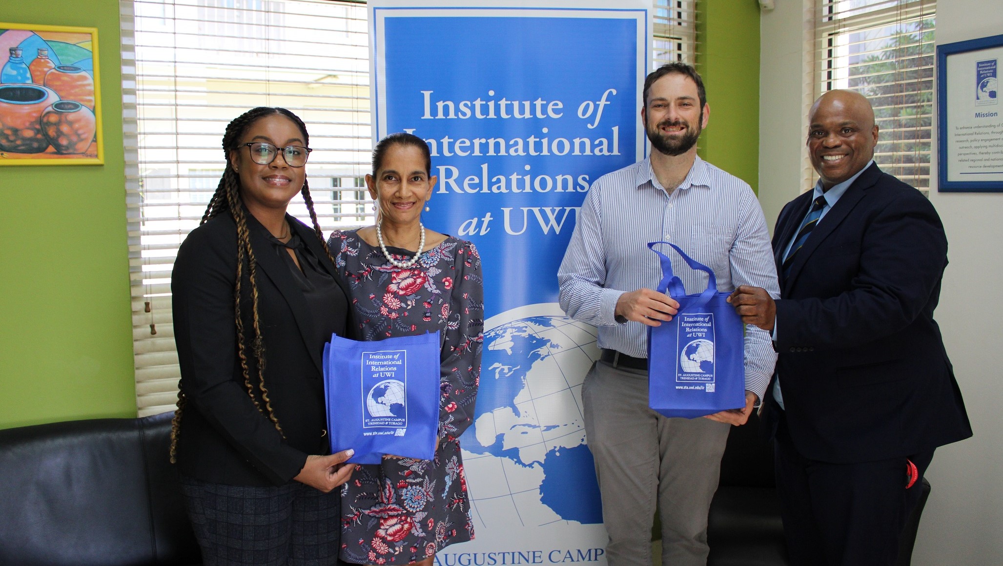 • On February 10,  2026, the Institute of International Relations (IIR) was pleased to welcome Mr. Leo Page Blau, Assistant Public Affairs Officer & Kervelle Durant-Julien, Public Engagement Specialist of the U.S. Embassy, Port of Spain. During their visit, Mr. Blau & Ms. Durant-Julien met with our new Director, Dr. Abdul Knowles (PhD, LL.M.), as well as Dr. Georgina Chami, lecturer at the IIR. The engagement was truly insightful and provided a meaningful opportunity for discussion on areas of mutual interest and future collaboration.