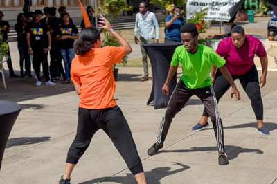 There were performances by the UWI Department of Creative and Festival Arts Dance Group; Idrees Saleem (2014 Grand Slam Champion); Aaliyah Ali of Lakshmi Girls’ Hindu School (spoken word performance); Dylan Kowlessar of Hillview College (pan); Kahei Pun and Satesh Singh of Hillview College (monologue); upcoming local Reggae performer Touchy; Joshua Regrello (pan); Sasha-Ann Moses of the UWI Faculty of Law (song); Zalika Pollard (Bishops Anstey High School (song); Leandra Clarke (spoken word); the Youth Arm of the Santa Rosa First Peoples Community Group (indigenous poem); Ayanna Norville and students from the Hugh Wooding Law School (skit); Jasmine Lezama of the National Youth Action Committee (calypso); Tracelle Frederick (cello); Laurissa and Renelle Maharaj (violin), Tafari – a young and upcoming conscious artist; the Felicity Backroad Boys Tassa Group; and Joel Lewis (Moko Jumbie). A very entertaining extempo performance was given by the visually impaired, National Junior Extempo Monarch winner for 2019, Mr. Kishon Phillip, who faced off with his mentor and coach, Extempo King, Joseph ‘The Mighty Lingo’ Vautor-Laplaceliere.