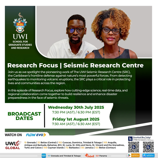 This month’s episode of Research Focus, hosted by the School of Graduate Studies and Research, highlights the work of the Seismic Research Centre (SRC) and its vital role in safeguarding lives and communities throughout the region.