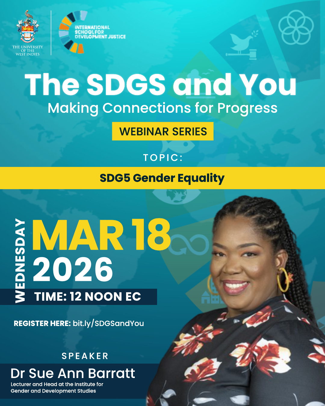 The International School for Development Justice at The University of the West Indies invites you to join the next session in The SDGs and You: Making Connections for Progress webinar series.