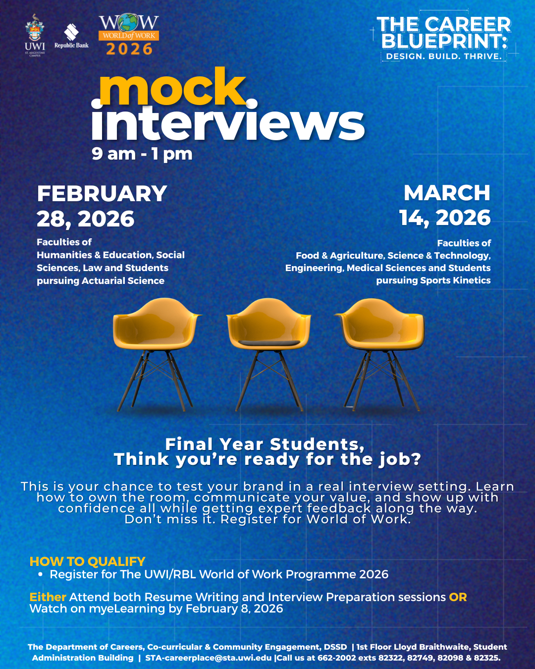 Final Year Students are encouraged to register early and access WOW OnDemand on myeLearning to qualify for a Mock Interview session for the World of Work Recruitment Fair