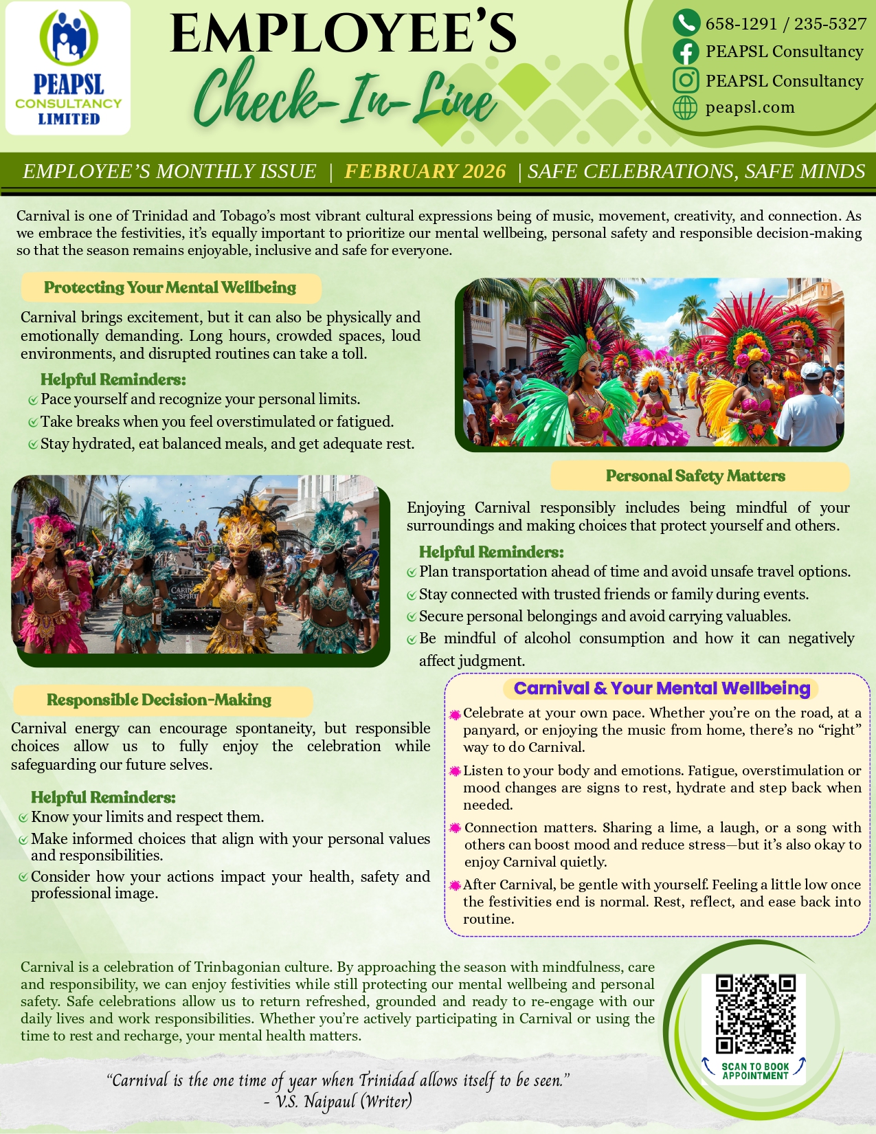 Carnival season is here—bringing energy, excitement, and connection. It’s also a good time to pause and check in with yourself. This month’s Employee’s Check-In Line shares simple, practical tips on protecting your mental wellbeing, staying safe, and making mindful choices so you can enjoy the season at your own pace.