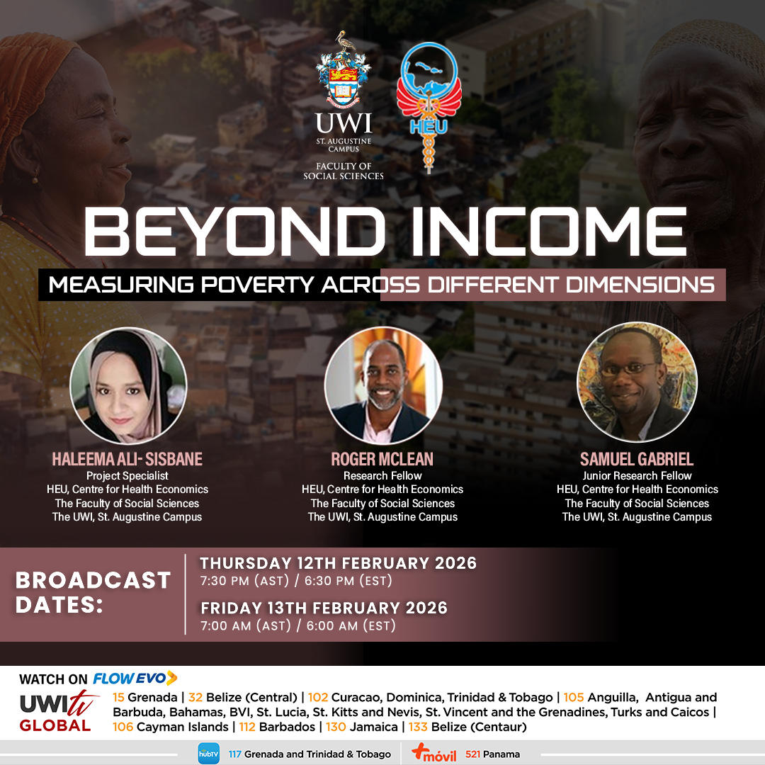 The Health Economics Unit (HEU), Centre for Health Economics at The University of the West Indies (UWI), St. Augustine Campus, invites the general public to a special broadcast of an engaging and thought-provoking seminar titled: Beyond Income: Measuring Poverty Across Different Dimensions.