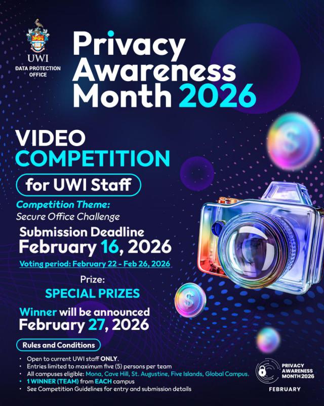 UWI Staff are invited to take part in an exciting Video Competition hosted by the University Data Protection Office as part of Privacy Awareness Month 2026.