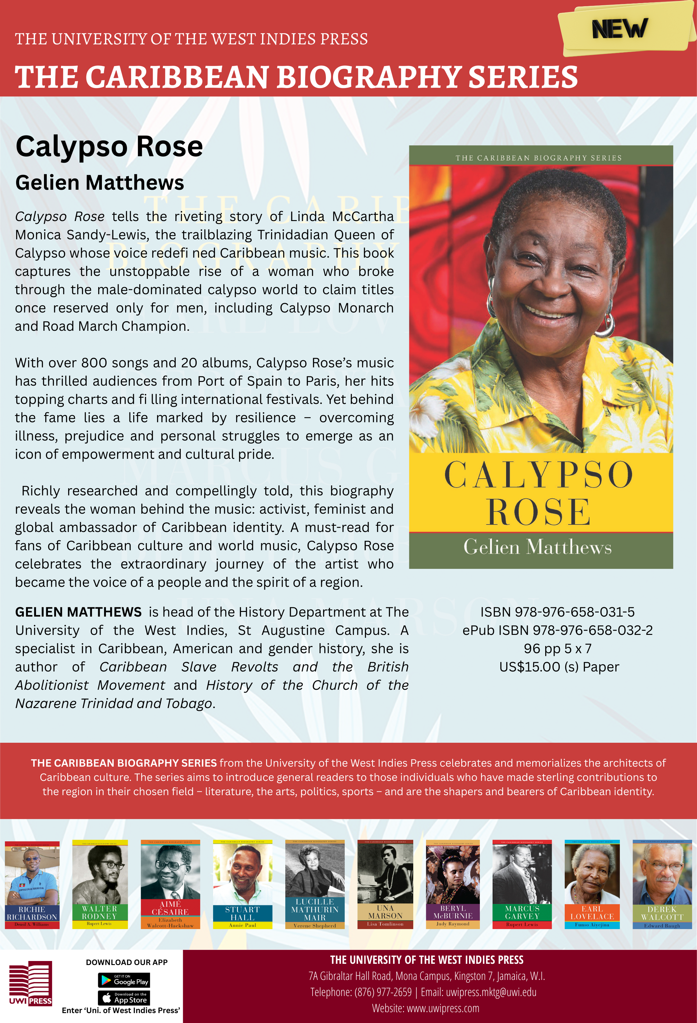 Authored by Gelien Matthews, Head of the History Department at The University of the West Indies, St. Augustine, this work forms part of a distinguished series that celebrates individuals who have made outstanding contributions to Caribbean culture and society.