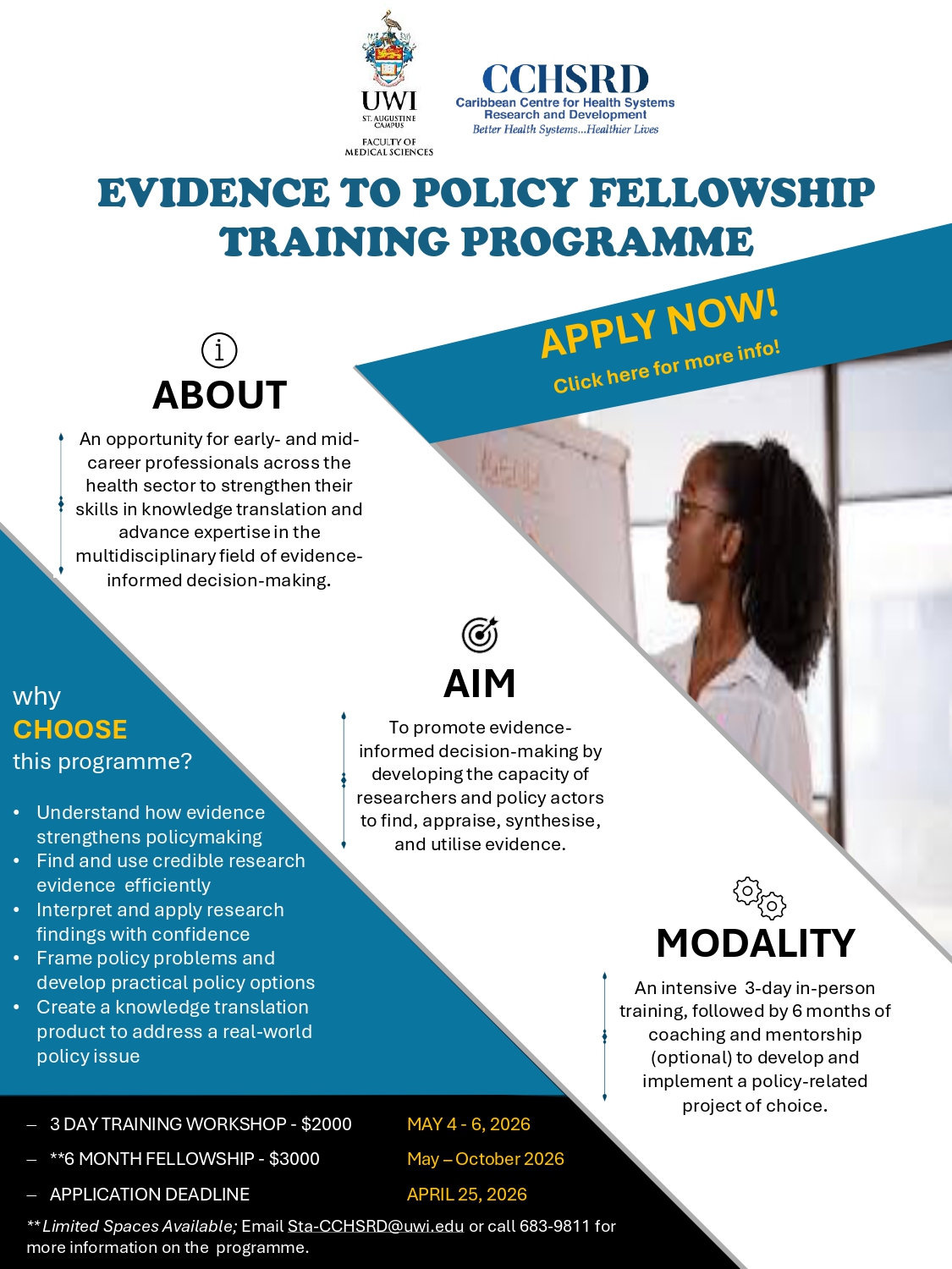 For full details, please see the attached flyer or contact sta-cchsrd@uwi.edu or 683-9811 for more information.