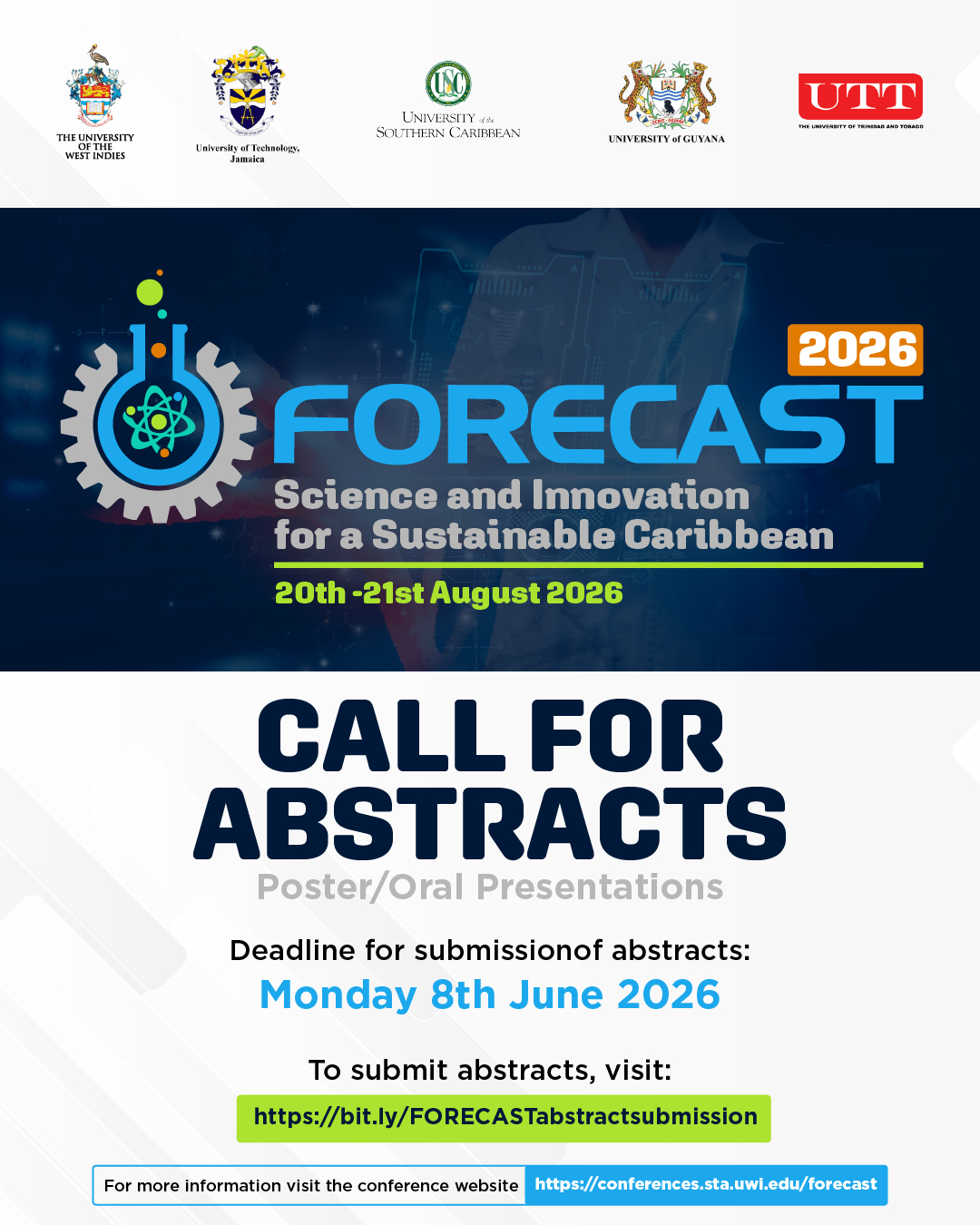 The Faculty of Science and Technology (FST) invites interested persons to submit abstracts for the third Frontiers of Research in Caribbean Science and Technology (FORECAST) Conference, which will be held on August 20–21, 2026 at The UWI St. Augustine, Trinidad and Tobago.
